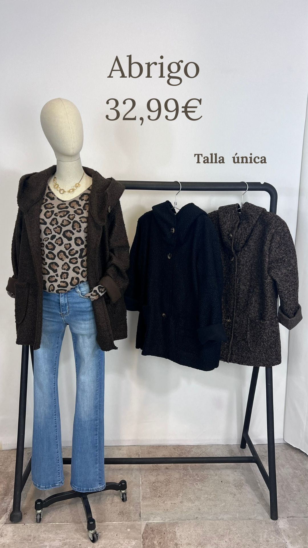 Abrigo con capucha tejido rizadito